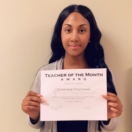 Villa Montessori is pleased to announce that they have awarded the October Teacher of the Month Award to Ms. Dominique. The monthly award is meant to honor teachers who go the extra mile in helping the young minds at Villa Montessori grow and flourish.